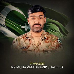 However, during intense fire exchange, three brave sons of soil, Lance Havaldar Abbas Ali (age: 38 years, resident of District Ghizer), Naik Muhammad Nazir (age: 37 years, resident of District Skardu) and Naik Muhammad Usman (age: 37 years, resident of District Attock), having fought gallantly, paid the ultimate sacrifice and embraced Shahadat.