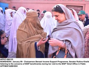 During her visit to the BISP Tehsil Office in Pabbi, Nowshera District, Senator Rubina Khalid spoke to media representatives and highlighted that BISP’s registration process has become more dynamic. She urged eligible individuals to visit their nearest BISP Tehsil Office to register, emphasizing that an original National Identity Card, Form B, and children’s school details are mandatory for registration. She told media that health and education services are being provided through the Benazir Nashonuma and Benazir Taleemi Wazaif Programs.