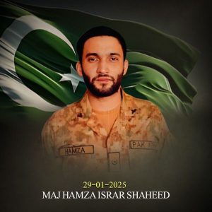 ISPR Rawalpindi, 30 January: The funeral prayer of Major Hamza Israr Shaheed (aged 29, resident of District Rawalpindi), who embraced martyrdom while valiantly defending the motherland in Mir Ali, was solemnly offered at Chaklala Garrison, Rawalpindi.