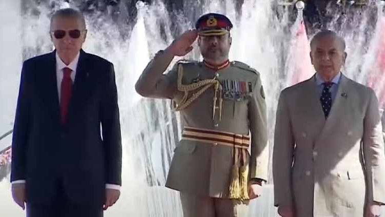 A squadron of Pakistan Air Force jets performed a magnificent flypast to welcome the Turkish president. Chief of the Army Staff General Syed Asim Munir was also present on the occasion.