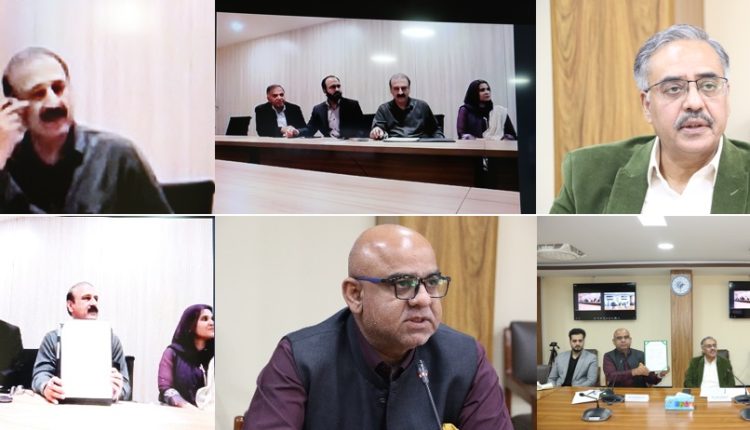 March 13, The Institute of Strategic Studies Islamabad (ISSI) has concluded a Memorandum of Understanding (MoU) with the University of Central Punjab, Lahore. The virtual signing ceremony marked a significant step towards enhancing collaboration in academic research, exchanges, and policy dialogue. The MoU was signed by Malik Qasim Mustafa, Director Arms Control and Disarmament Centre (ACDC), ISSI, and Prof. Dr. Khalid Manzoor Butt, Dean, FOHSS. The signing ceremony was attended by Ambassador Sohail Mahmood, Director General, ISSI; Heads of Departments at FOHSS; and representatives from both institutions.