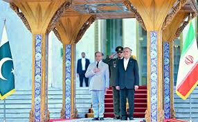 The national anthems of Pakistan and Iran were played as the prime minister stood at the salute dias.