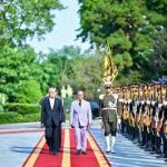 As the prime minister arrived at the Palace, he was warmly received by President Pezeshkian.