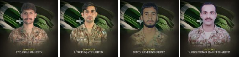 However, during intense fire exchange, Lieutenant Daniyal Ismail (age: 24 years, resident of District Mardan), a brave young officer who was leading his troops from front, fought gallantly and embraced Shahadat along with his three men. The three soldiers who paid ultimate sacrifice include Naib Subedar Kashif Raza (age: 42 years, resident of District Chakwal), Lance Naik Fiaqat Ali (age: 35 years, resident of District Haripur) and Sepoy Muhammad Hameed (age: 26 years, resident of District Abbottabad).