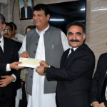 During his speech, the Federal Minister presented a check of one crore rupees to the Peshawar High Court Bar on behalf of the federal government. The check was handed over to Bar President Ameen-ur-Rehman Advocate. On this occasion, the Bar’s General Secretary Ashfaq Dawoodzai, other cabinet members, and lawyers were also present.