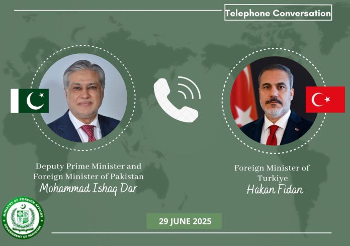 ISLAMABAD, June 29 : Deputy Prime Minister/Foreign Minister Senator Mohammad Ishaq Dar and Turkish Foreign Minister Hakan Fidan Sunday discussed the bilateral and multilateral cooperation.