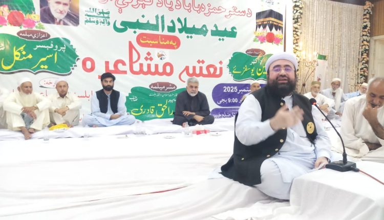 Addressing the ceremony, Minister Qadri highlighted that such events celebrate the teachings of Prophet Muhammad ﷺ and honor the poetic contributions of Amir Hamza Khan Shinwari, emphasizing that love for the Prophet ﷺ is an integral part of faith.