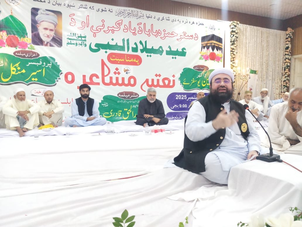 LANDI KOTAL.September 7, 2025 – A grand Naat recitation ceremony was held in Landi Kotal to celebrate Eid Milad-un-Nabi ﷺ and in memory of the renowned Pashto poet, Amir Hamza Khan Shinwari.