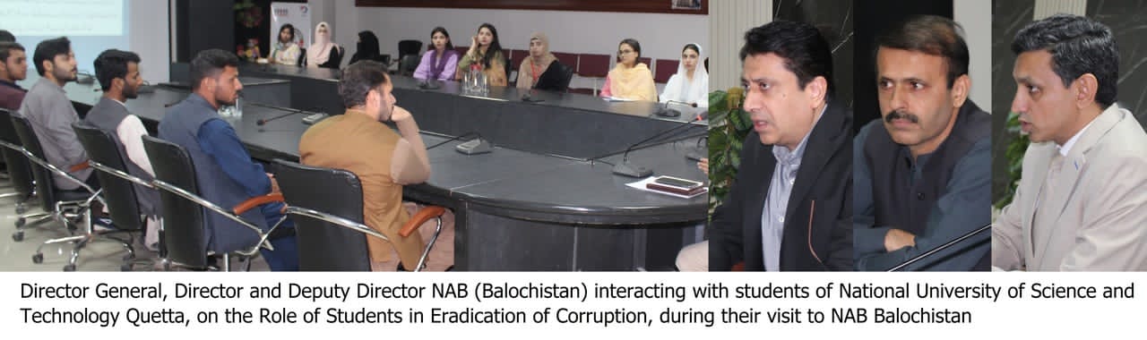 Speaking during a visit of a delegation from the National University of Science and Technology (NUST) Quetta Cantt, led by Assistant Professor Dr. Rafiqullah, the DG underlined that engaging youth and academia is essential to building integrity and strengthening accountability culture.