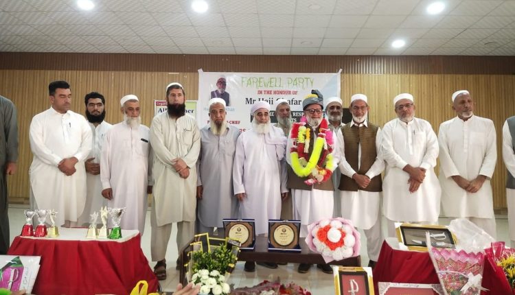 Khyber Oct.19(By Aman Ali Shinwari): A grand farewell ceremony was held at Landi Kotal Jirga Hall in honour of retired Headmaster and former Education Officer, Haji Ghafar Shinwari, organized by the Local Teachers Association. The event celebrated his decades-long contribution to education and his dedicated role in promoting learning and nurturing students across the region.
