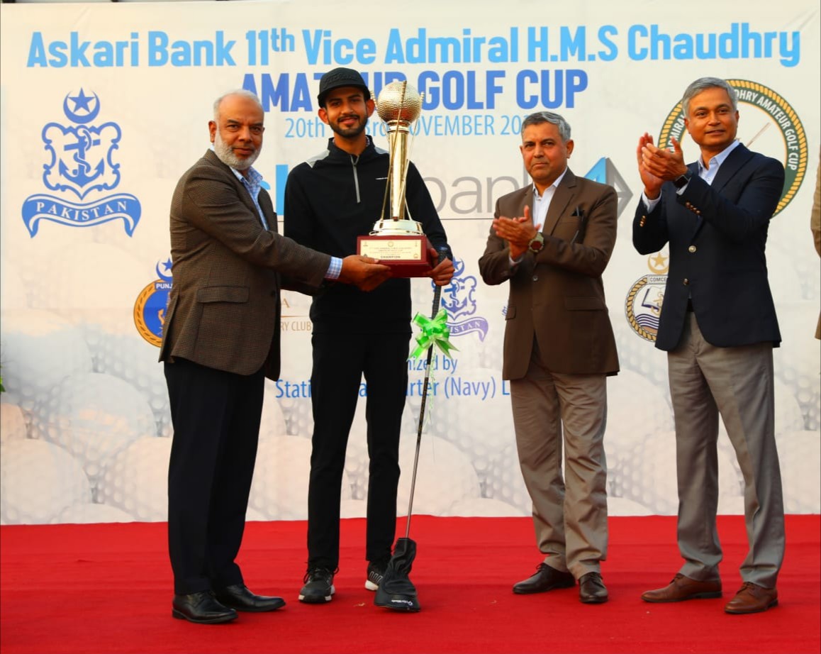 Muhammad Saim Tahir claimed the title at the 11th Vice Admiral H.M.S. Chaudhry Amateur Golf Cup 2025, held at the Defence Raya Golf & Country Club, Lahore. In the senior amateur category, Abdul Rauf Ali emerged victorious, while Shehnaz Moeen won the ladies’ category. The closing ceremony was attended by Chief of Naval Staff Vice Admiral Raja Rab Nawaz as the chief guest.