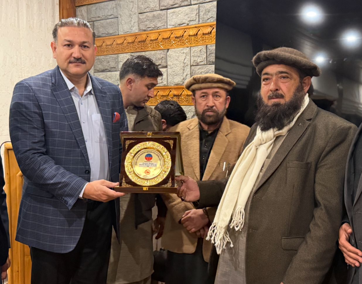 Gilgit, Nov 24: A formal farewell ceremony was organized by the Excise and Taxation, Zakat & Ushr, Cooperative, Narcotics Control, and Transport departments to honor Provincial Minister Haji Rehmat Khaliq. Numerous officers and staff from various departments attended the event.
