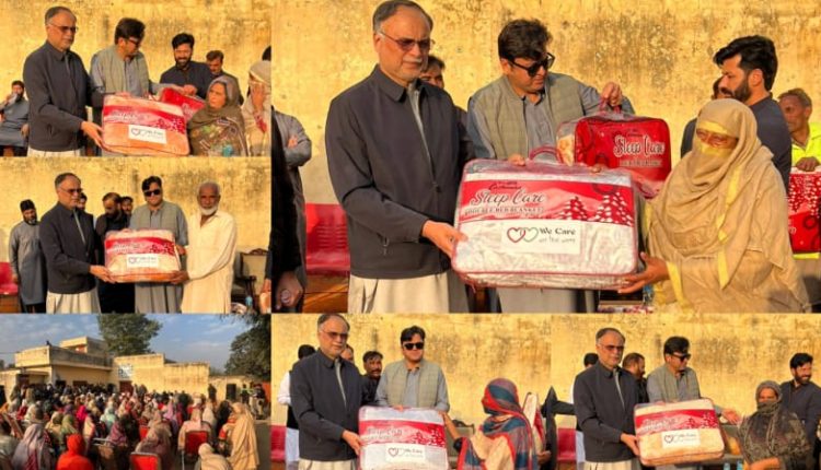 At the event, women wrapped in winter shawls queued to receive the “We Care” branded blankets, while officials and community elders assisted the distribution.