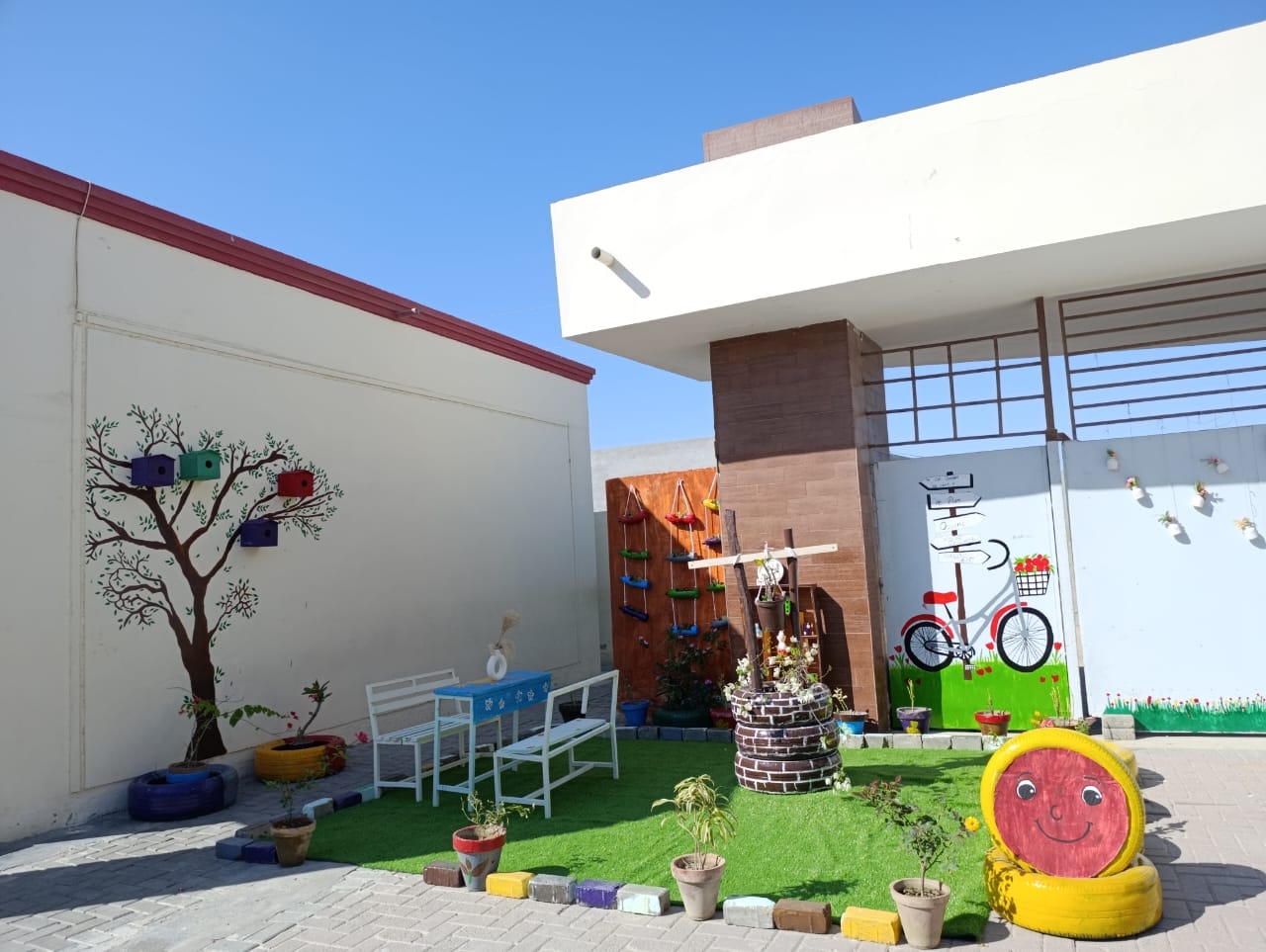 He said every part of this corner — whether it is the painted tyres, the artificial turf, the colourful pots, or the wall art — was prepared and arranged thoughtfully by the students.