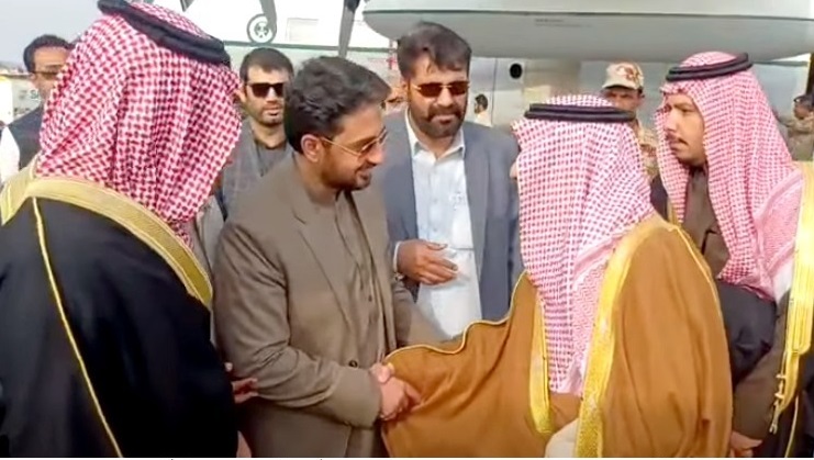 Governor of Tabuk Province, Prince Fahd bin Sultan, arrived in Balochistan on Friday, where he was warmly received at Dalbandin Airport by Provincial Finance Minister Mir Shoaib Nosherwani on behalf of Chief Minister Balochistan Mir Sarfraz Bugti. Member of the Balochistan Assembly Zabad Ali Reki, tribal elders, and senior district officials were also present. Welcoming the distinguished guest, the finance minister said the visit was an honor for Balochistan and highlighted the cordial and brotherly relations between Balochistan and Tabuk, founded on mutual respect and trust. He expressed hope that the visit would further strengthen ties between Balochistan and Saudi Arabia.