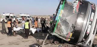 A passenger bus overturned near Hud Goth on the Makran Coastal Highway, killing nine and injuring 36. Victims, primarily laborers from Sindh, were en route to work in Gwadar. Seven critically injured passengers were admitted to Ormara Hospital. Balochistan CM Mir Sarfraz Bugti has ordered a full inquiry and immediate medical support for the injured.
