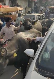 Larkana neighbourhoods, streets meant for people have gradually turned into informal cattle enclosures, where buffaloes roam freely, traffic crawls.