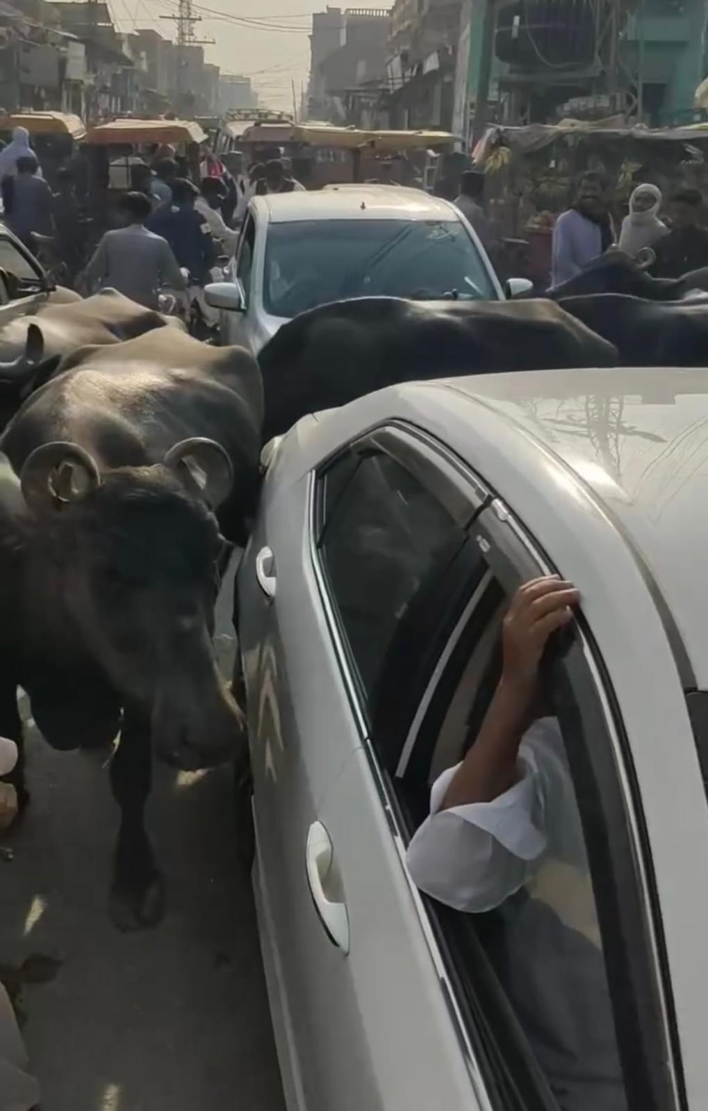 Larkana neighbourhoods, streets meant for people have gradually turned into informal cattle enclosures, where buffaloes roam freely, traffic crawls.