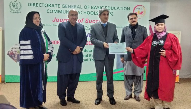 Islamabad, Jan 23: The Directorate General of Basic Education Community Schools (BECS) has concluded a teacher training programme for 201 non-formal education teachers from Azad Jammu and Kashmir, aimed at strengthening basic education delivery for underprivileged children.