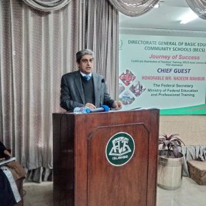 Secretary Ministry of Federal Education and Professional Training Nadeem Mahbub attended the closing ceremony as chief guest. He was received by Director General BECS Hameed Khan Niazi and Director FCE Professor Samia Rehman Dogar.