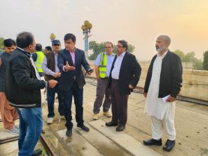 PD PMO SBIP, along with Deputy Project Director Mr. Noor-ul-Arfeen Baloch, Technical Officer Dr. Imran Aziz Tunio, and AXEN Mumtaz Ghumro, visited the rehabilitation works in line with the high-level schedule for the visit of President of the World Bank