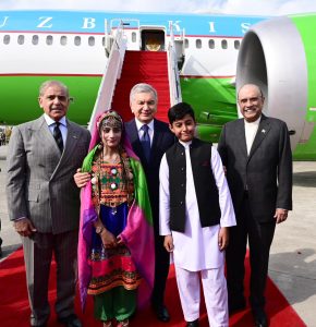 President Asif Ali Zardari and Prime Minister Muhammad Shehbaz Sharif receive H.E. Mr. Mirziyoyev Shavkat Miromonovich, President of the Republic of Uzbekistan