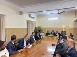 Muzaffarabad: The central office of the All Parties Hurriyat Conference (APHC) in Muzaffarabad hosted Overseas Pakistan Foundation (OPF) Chairman Syed Qamar Raza and his delegation yesterday for a high-level meeting with APHC convener Ghulam Mohammad Safi and senior leaders. The meeting focused on the latest situation in Kashmir and matters of mutual concern.