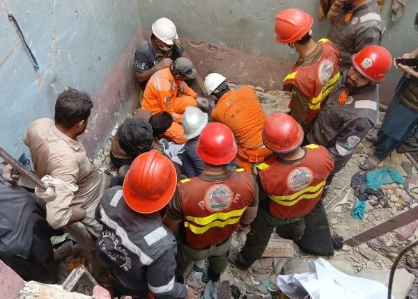 Karachi, February 21: Fifteen people were killed and 15 injured when a 40-yard illegal building collapsed in Soldier Bazaar’s Chori Maidan area.