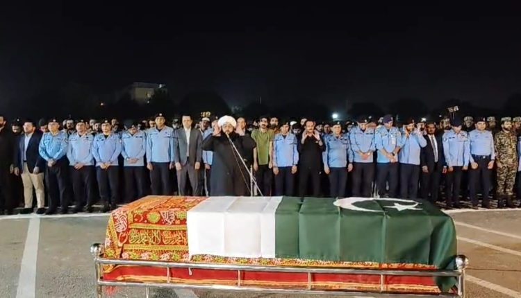 The funeral prayer of SP Adeel Akbar was offered at Islamabad Police Lines with full state honours. The funeral was attended by Minister of State for Interior Talal Chaudhry, senior police officials, law enforcement personnel, civil officers, and a large number of citizens.